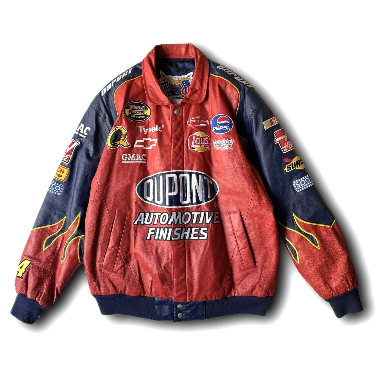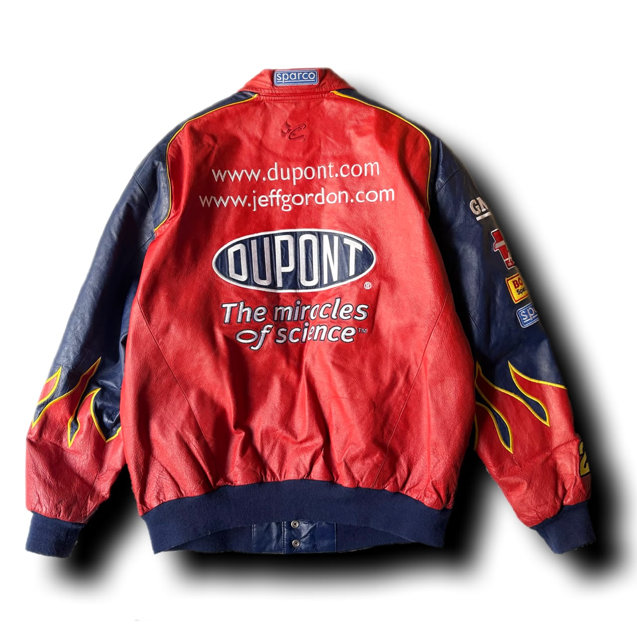 生地は本革、前後のDUPONTのロゴと袖のフレイムパターンが◎